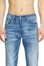 Featuring a medium blue wash in partially organic cotton, with subtle whiskers and used effects for depth and texture. The authentic look of this comfort denim makes it a DNA piece.